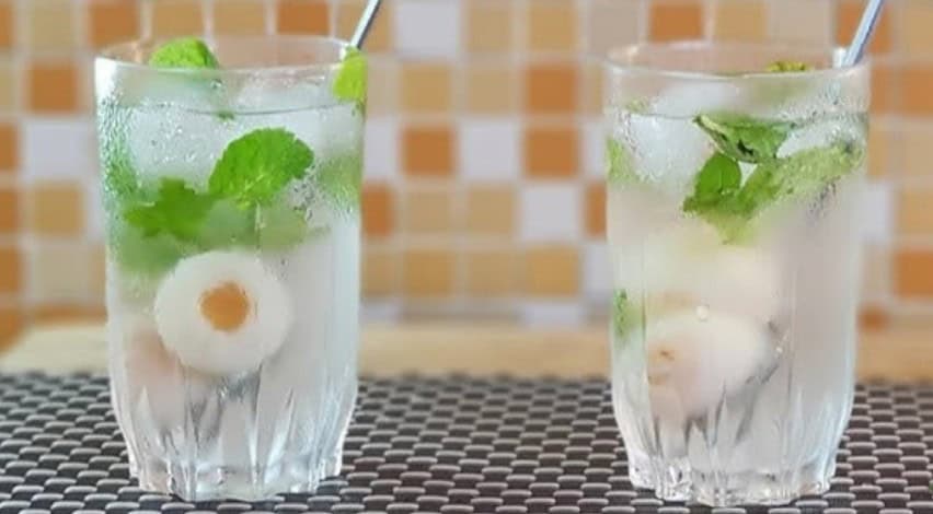 - Masukkan ais ke dalam gelas bersama laici dan hirisan limau nipis.