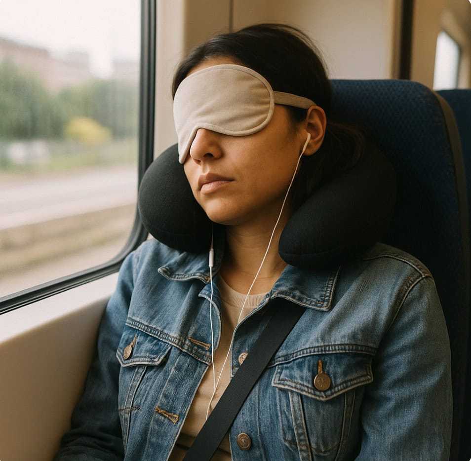 💡 Tip: Minum sedikit setiap jam dalam penerbangan. Guna face mist atau sleeping mask untuk kekalkan kelembapan muka.