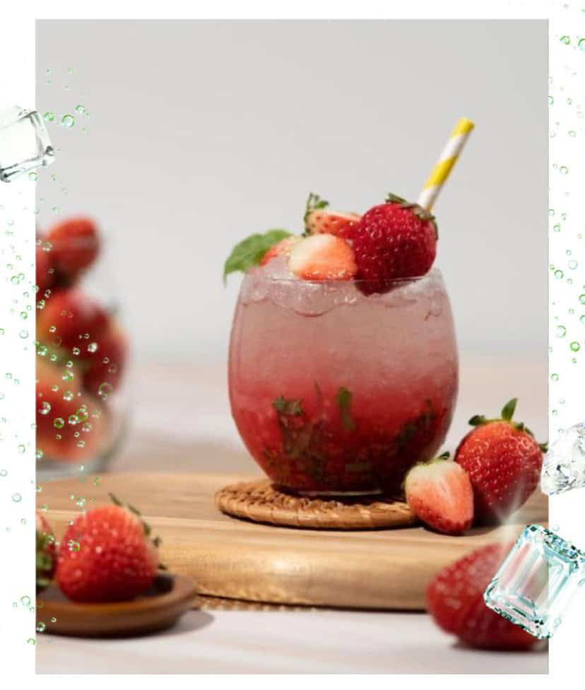 Kisar strawberi segar, campurkan dengan sirap vanila, tambahkan air sparkling, dan hiaskan dengan daun selasih serta hirisan strawberi. Kombinasi manis dan herba menjadikan minuman ini sempurna untuk dihidang pada acara santai. Letakkan potongan strawberi di tepi gelas untuk menambahkan daya tarikan visual kepada minuman ini.